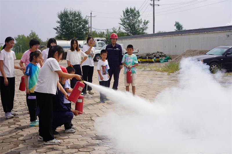 随后,该公司还在厂区内组织开展了亲子消防教育活动。活动中,安全员为家属介绍了家庭常见易燃物品与不易燃物品的性质及家居安全用电等知识,系统讲解了火灾预防和逃生常识、灭火器种类和使用方法,并现场模拟火灾事故进行了实操演习。